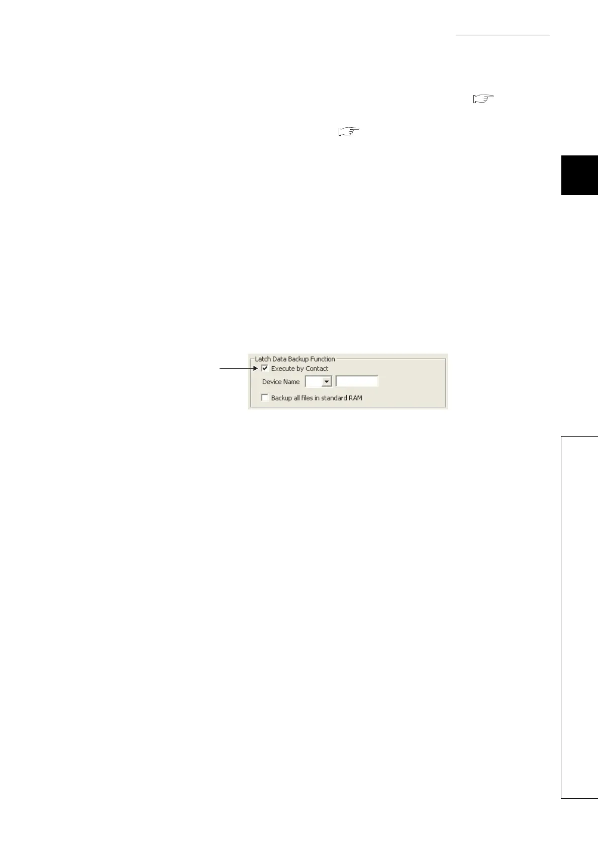 "Transfer to Standard ROM at Latch data backup operation" checkbox on the PLC file tab. ( Page 440,