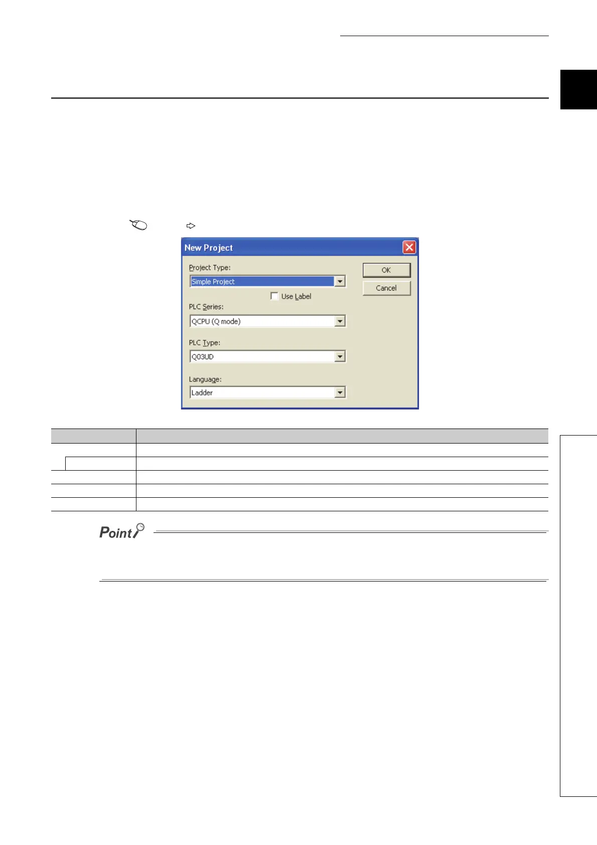 PLC Type Select a type of the CPU module (CPU module model) to use in the project. In this chapter, "Q03UD" is selected.