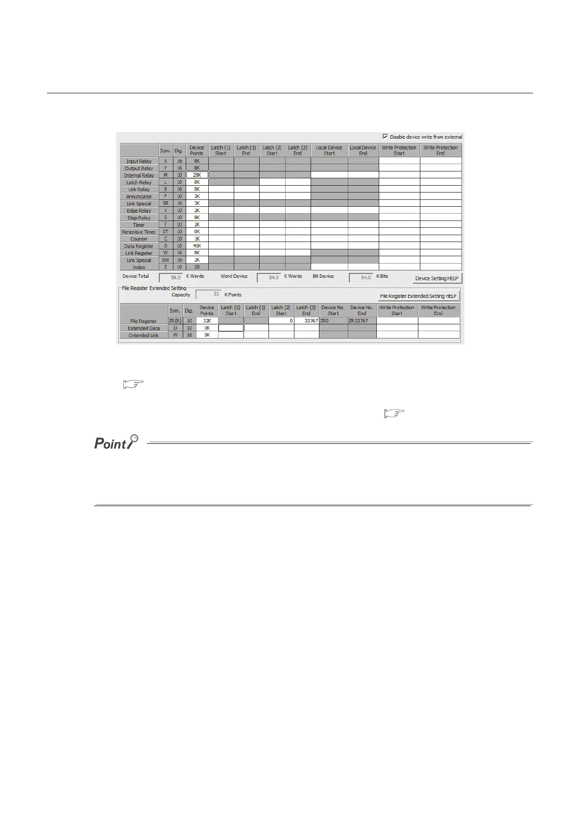 To input the write-protected range of the file register, extended data register, and extended link register, set the file