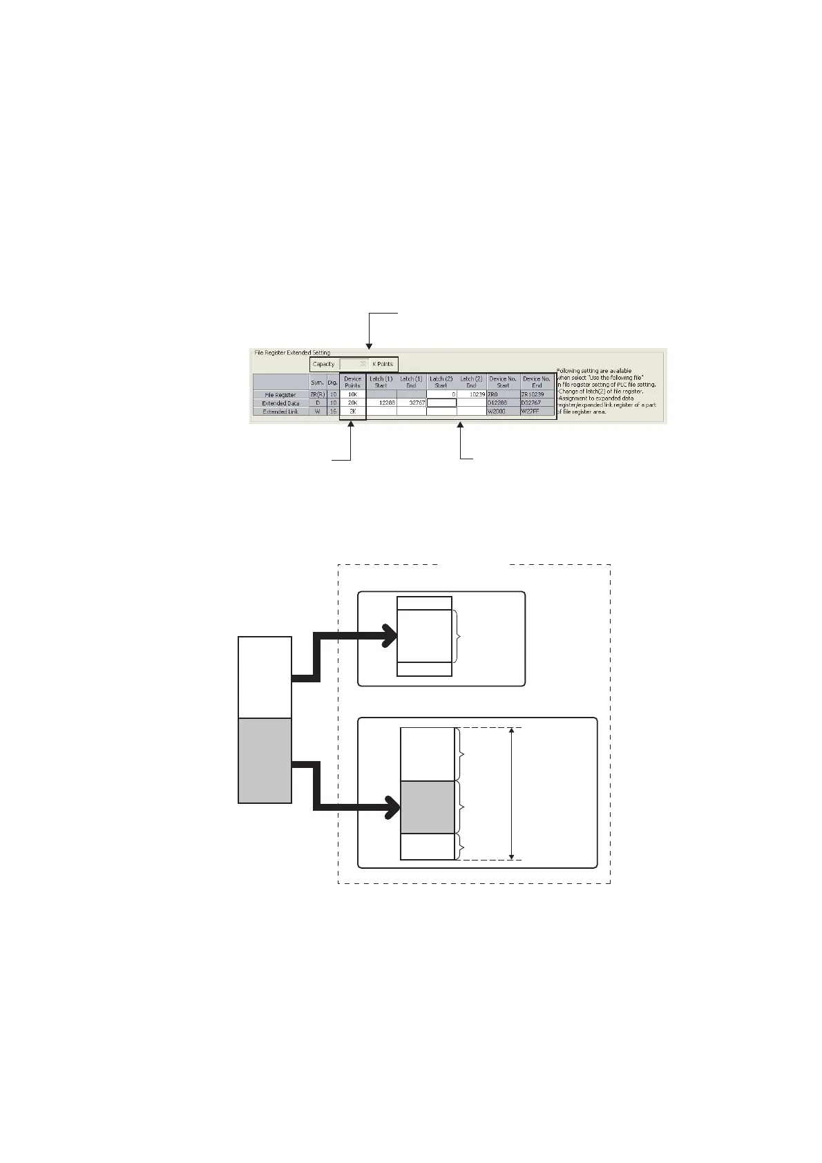Once the points for the extended data register (D) and extended link register (W) is set, areas for these devices