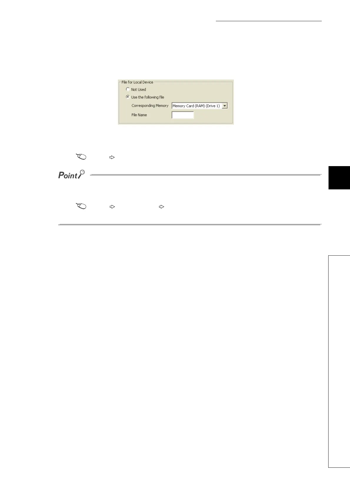 After setting the local device range, set a memory for storing the local device file and a file name in the PLC file
