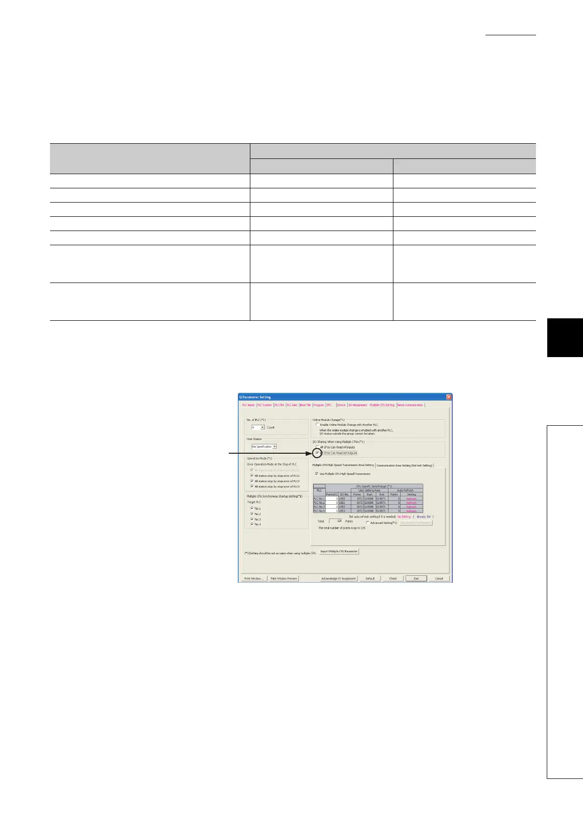 Multiple CPU settings screen of the PLC parameter dialog box.