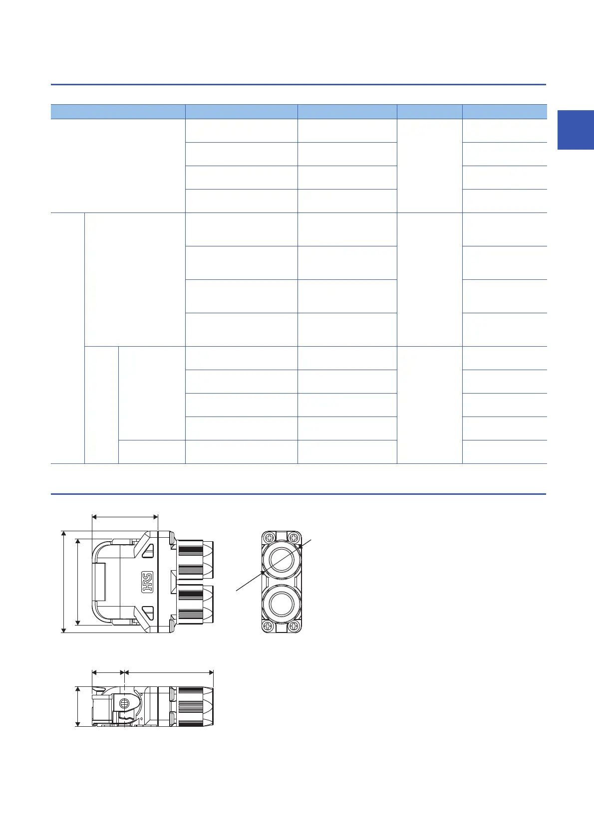 The connector dimensions for wiring the rotary servo motor are shown below.