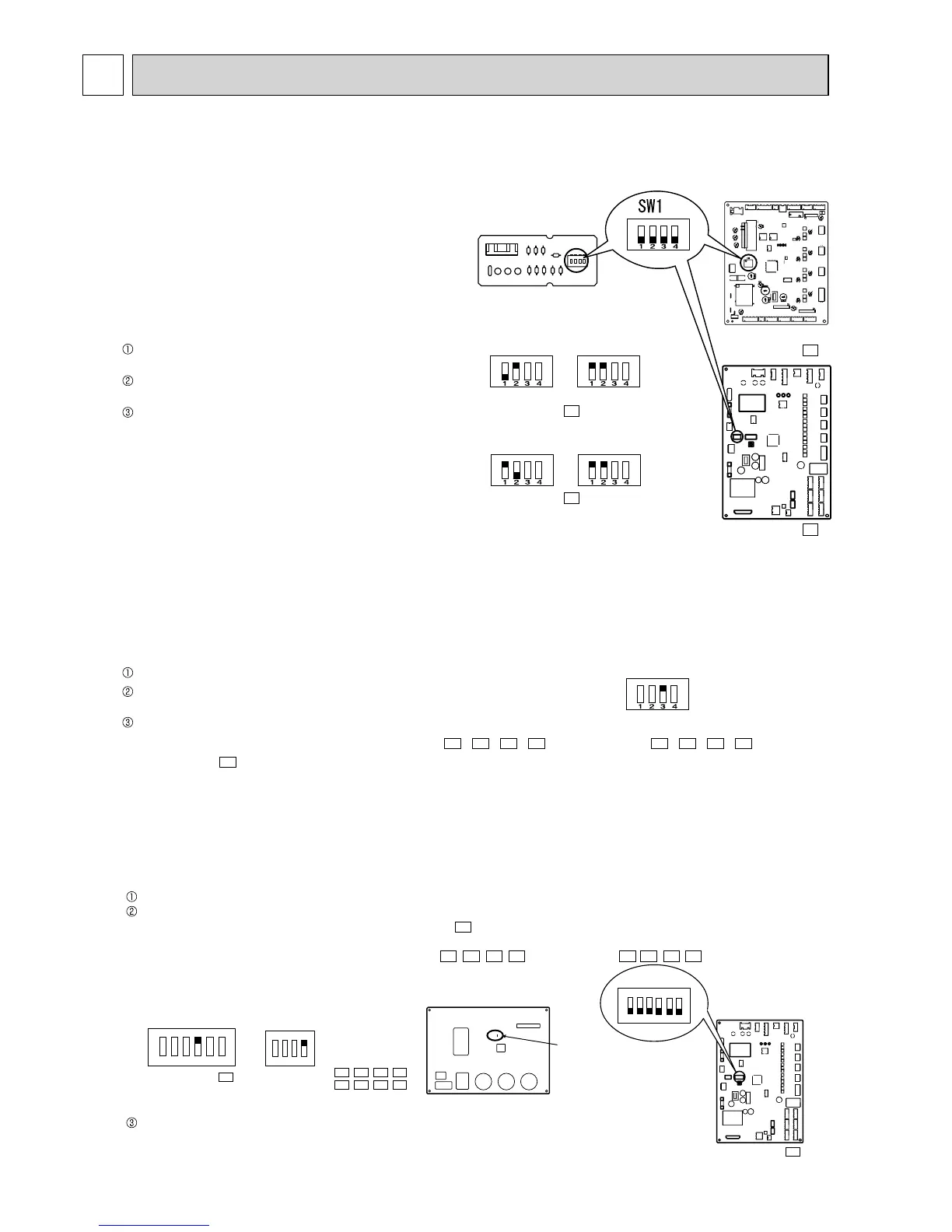 Set SW1 on the display P.C. board or the outdoor