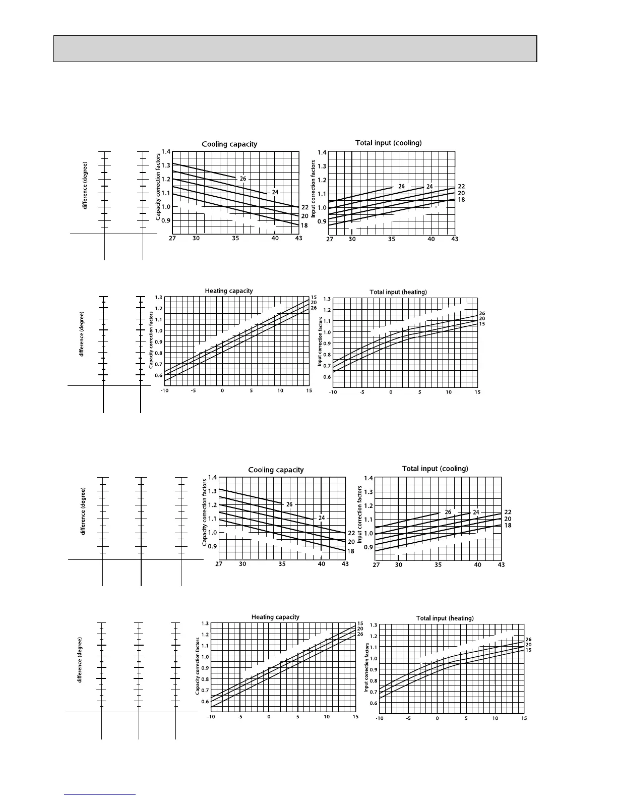 Mitsubishi Electric MXZ-4A71VA - E2 - Capacity and Input Correction Curves; MXZ-2 A, 3 A;4 A, 4 A80 VA, 5 A100 VA Correction Curves