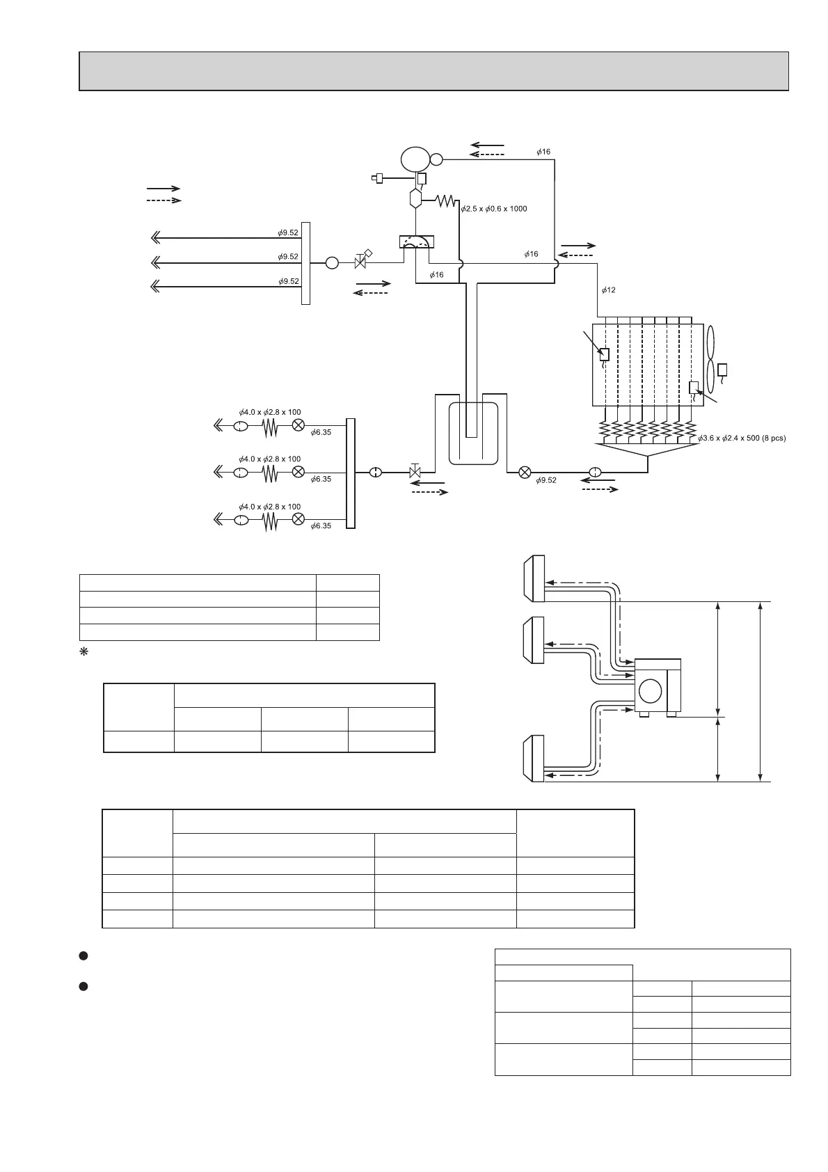 Refrigerant piping length (one way, 3 units total)