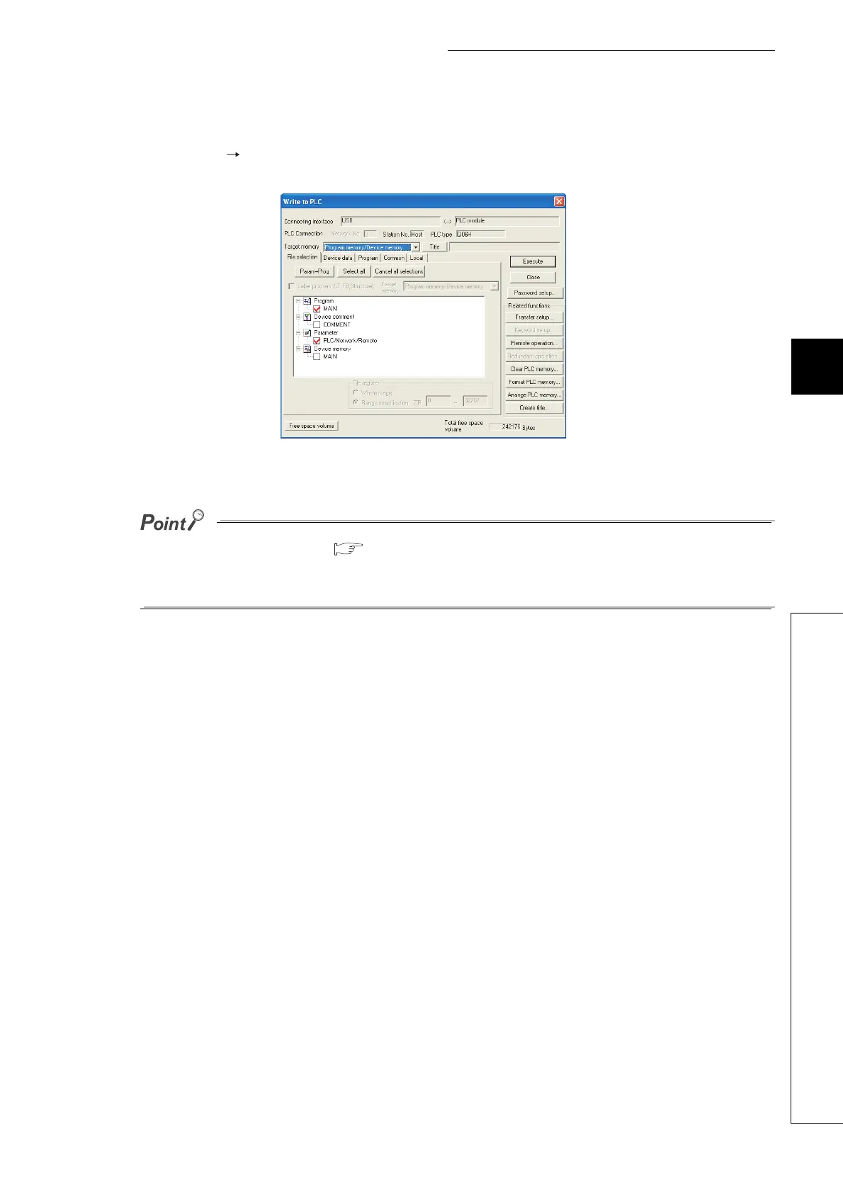 Select "Program memory/Device memory" in "Target memory" on the Write to PLC screen.