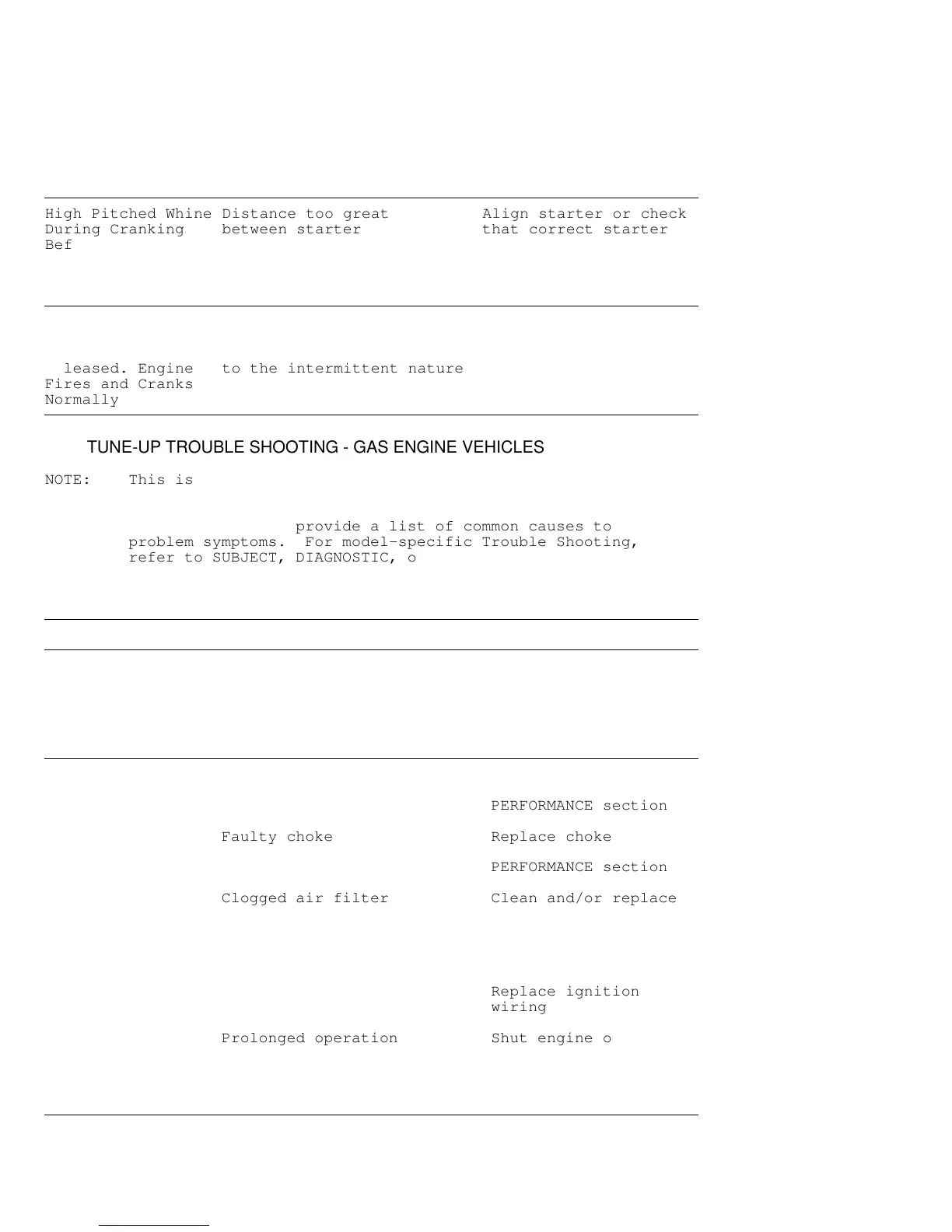 TUNE-UP TROUBLE SHOOTING - GAS ENGINE VEHICLES