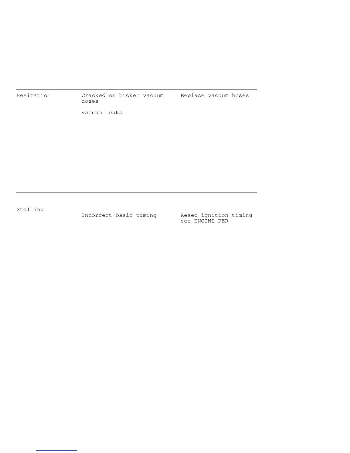 Hesitation Cracked or broken vacuum Replace vacuum hoses