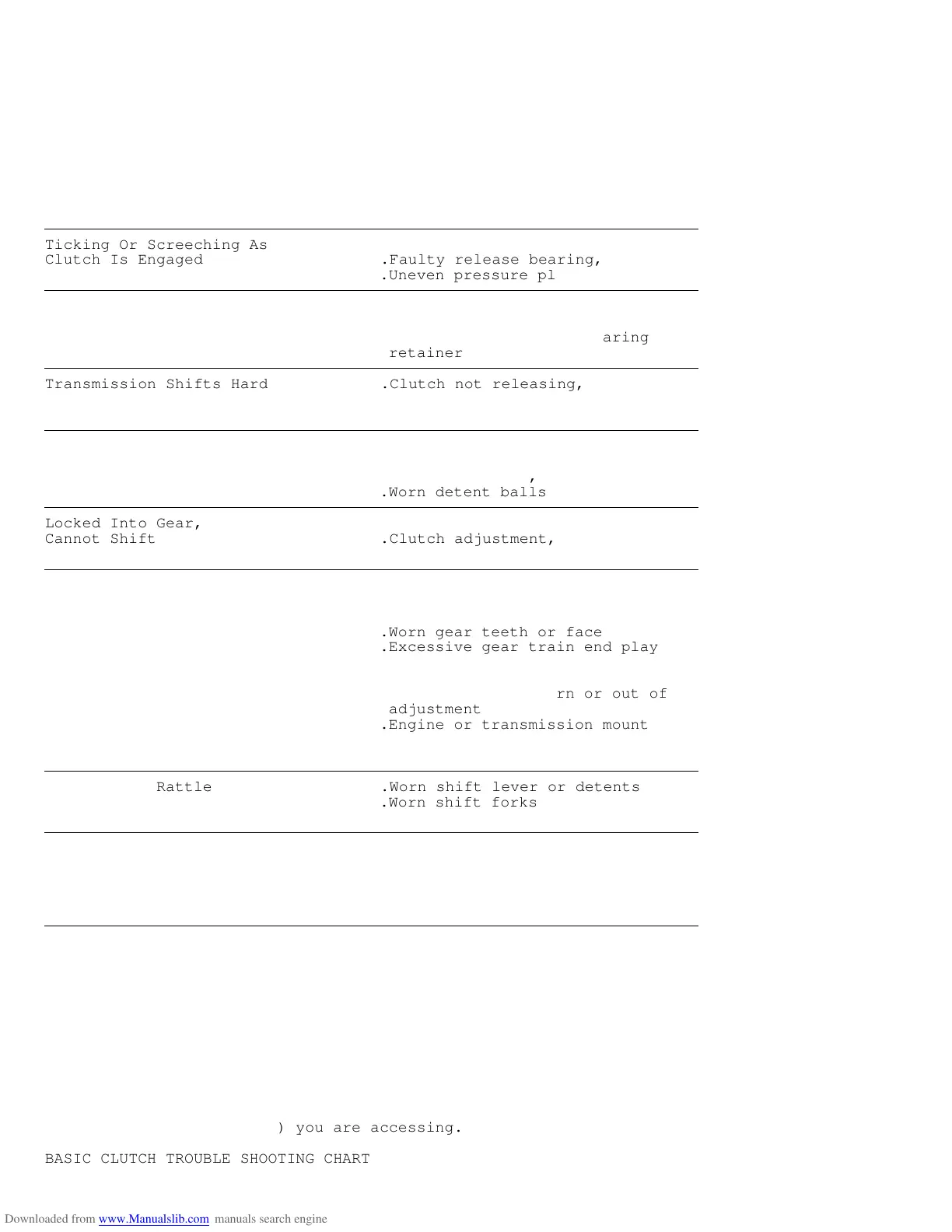 BASIC CLUTCH TROUBLE SHOOTING CHART