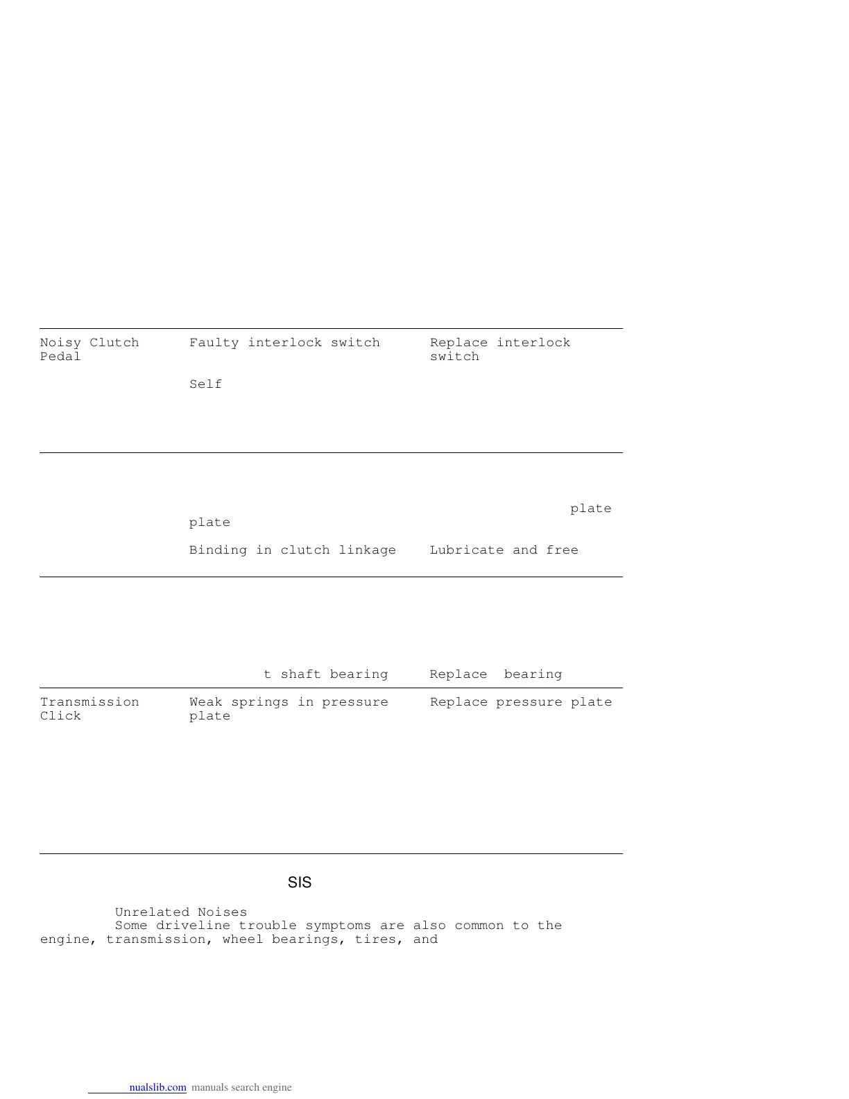 Clutch Pedal Binding clutch cable See CLUTCH article
