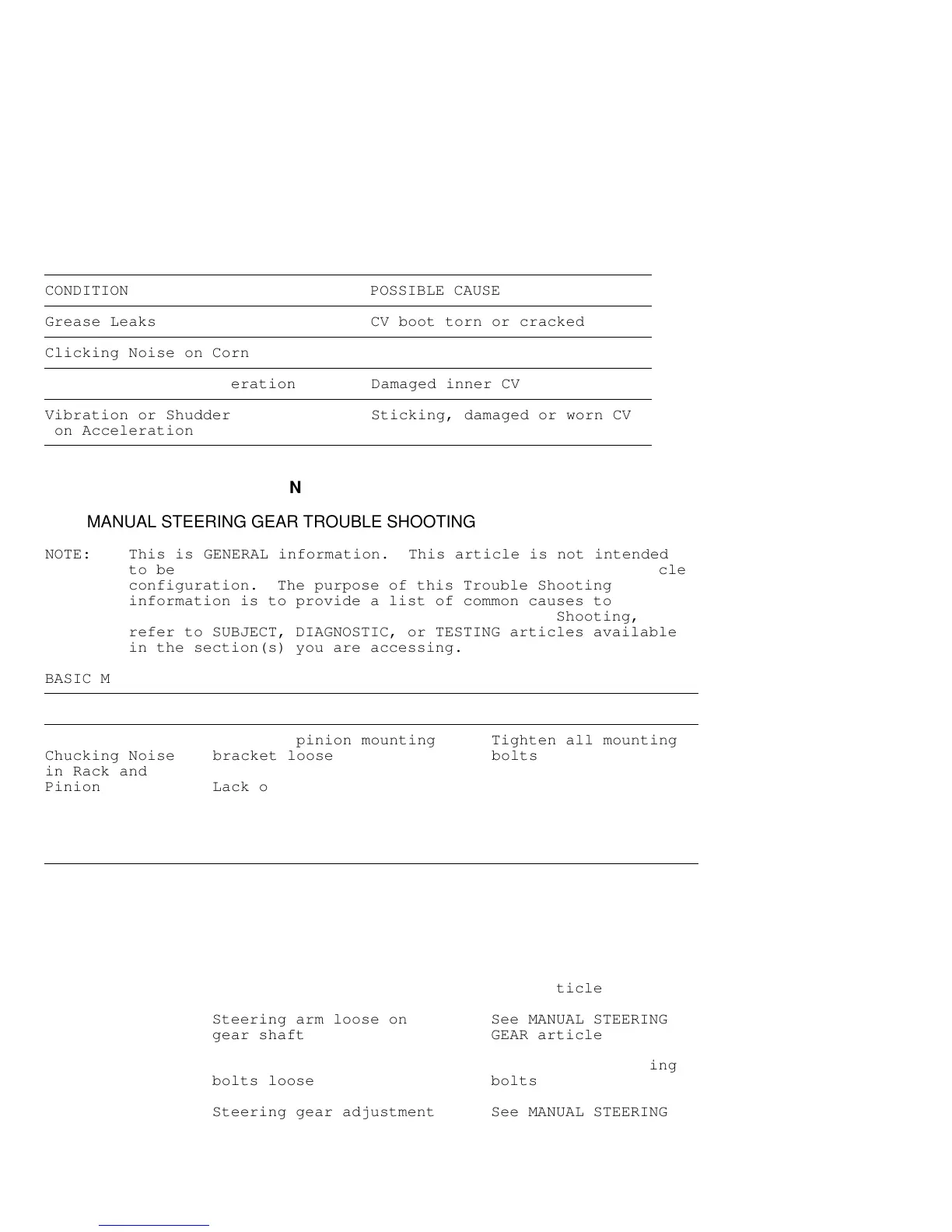MANUAL STEERING GEAR TROUBLE SHOOTING