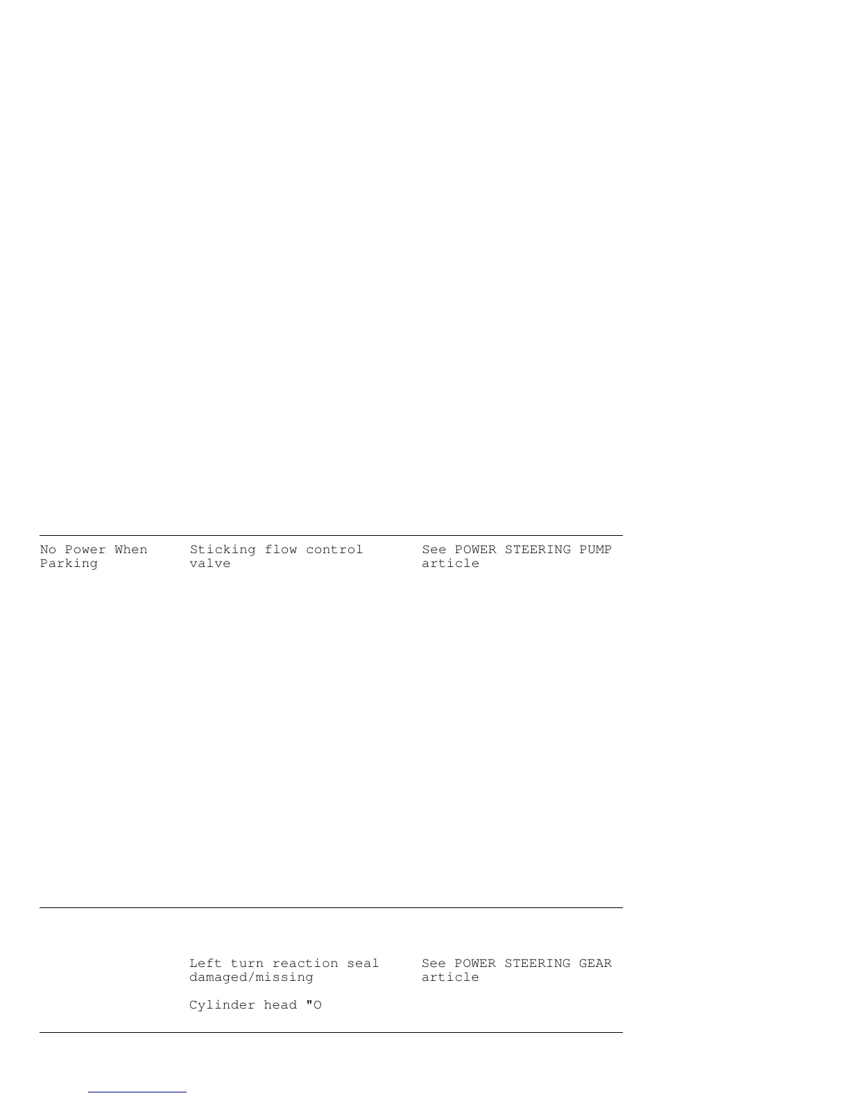 No Power, Left turn reaction seal See POWER STEERING GEAR