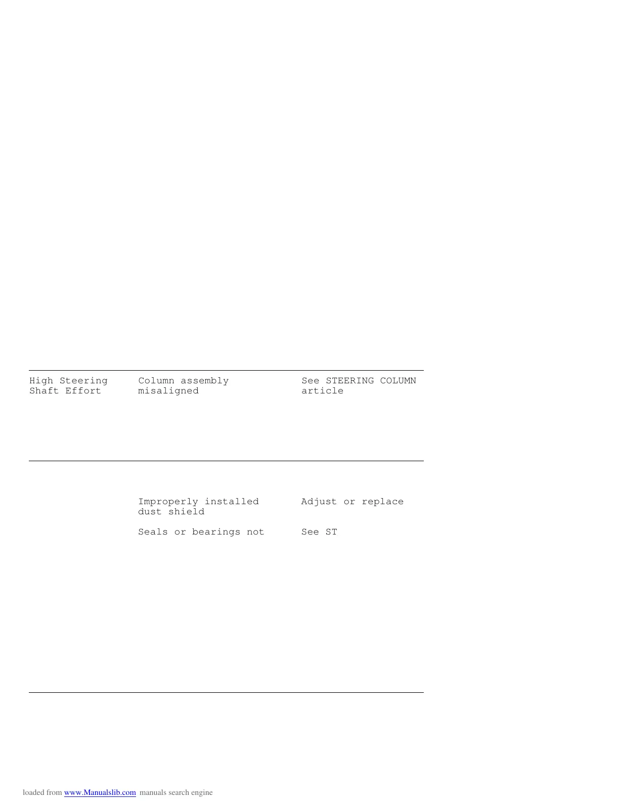 Seals or bearings not See STEERING COLUMNS