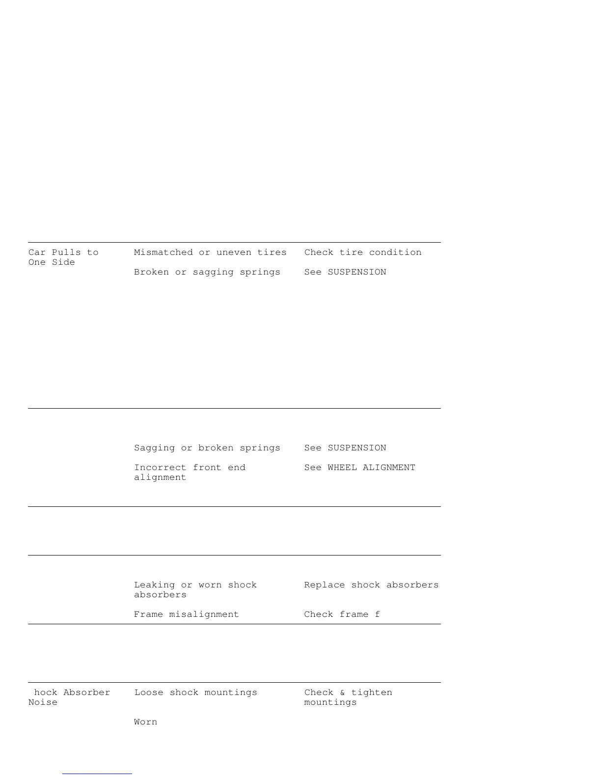 Spring Noises Loose "U" Bolts See SUSPENSION