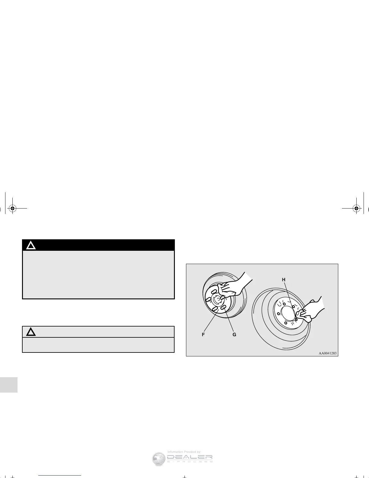 6. Clean out any mud, etc. on the hub surface (F), hub bolts