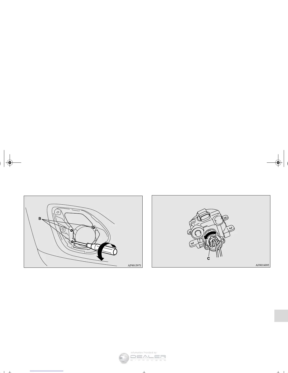 2. Remove the screws (B) and remove the light unit. 3. Turn the bulb (C) counterclockwise to remove it.