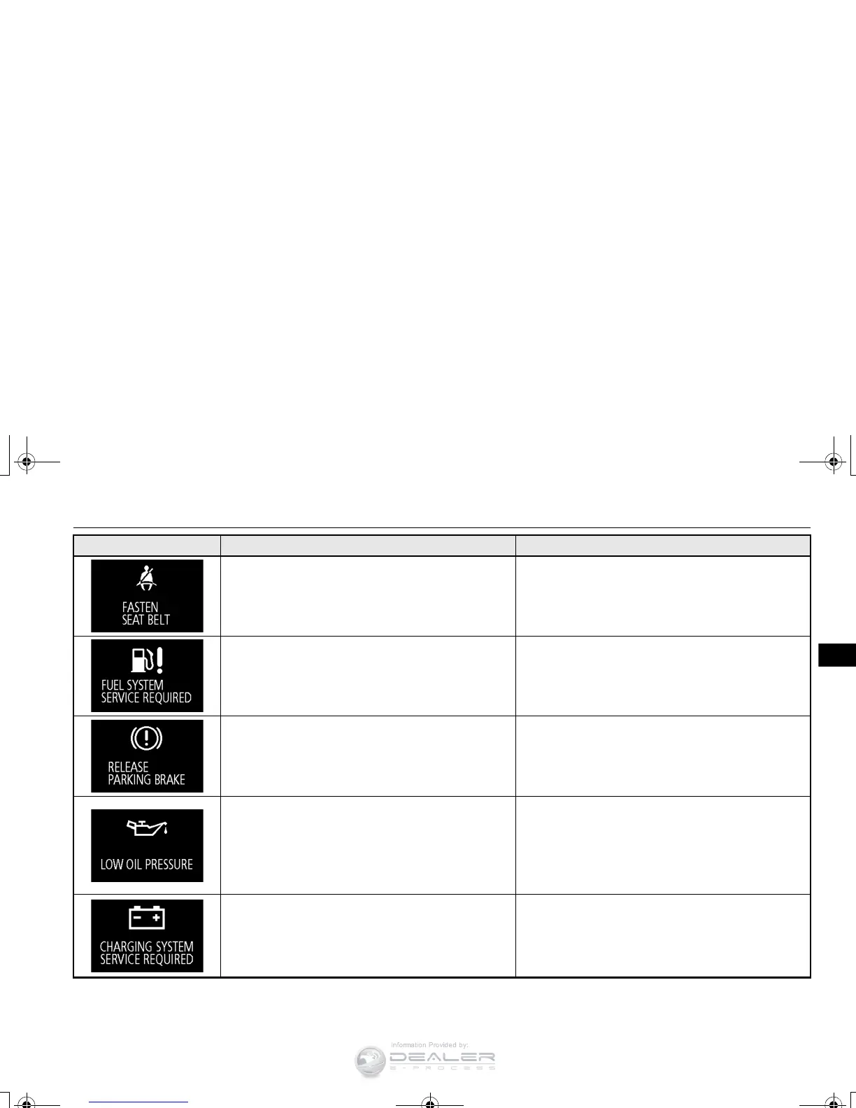 Indicator light, warning light, and information screen display list (multi information display - Type 1)