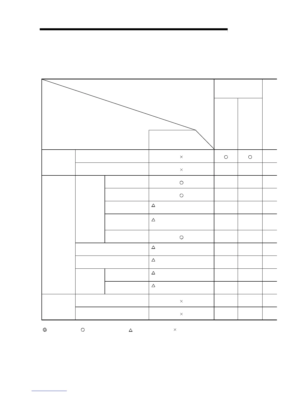 : Always combine, : Combination possible, : Combination limited, : Combination not possible, –: Setting invalid