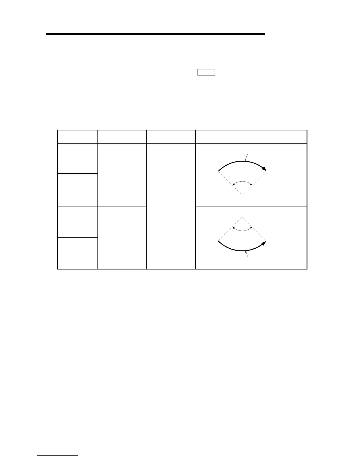The following table shows the rotation directions, arc center angles that can be