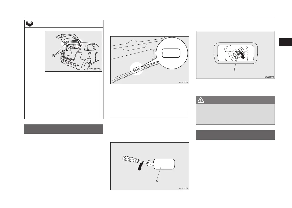2. Move the lever (B) to open the tailgate.