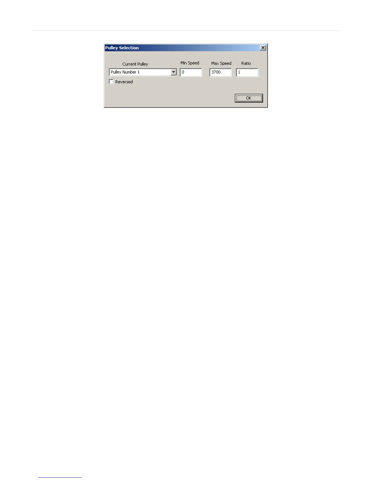 Your current pulley will be selected. Your Max Speed value is your pulley max needed for the spindle calibration.