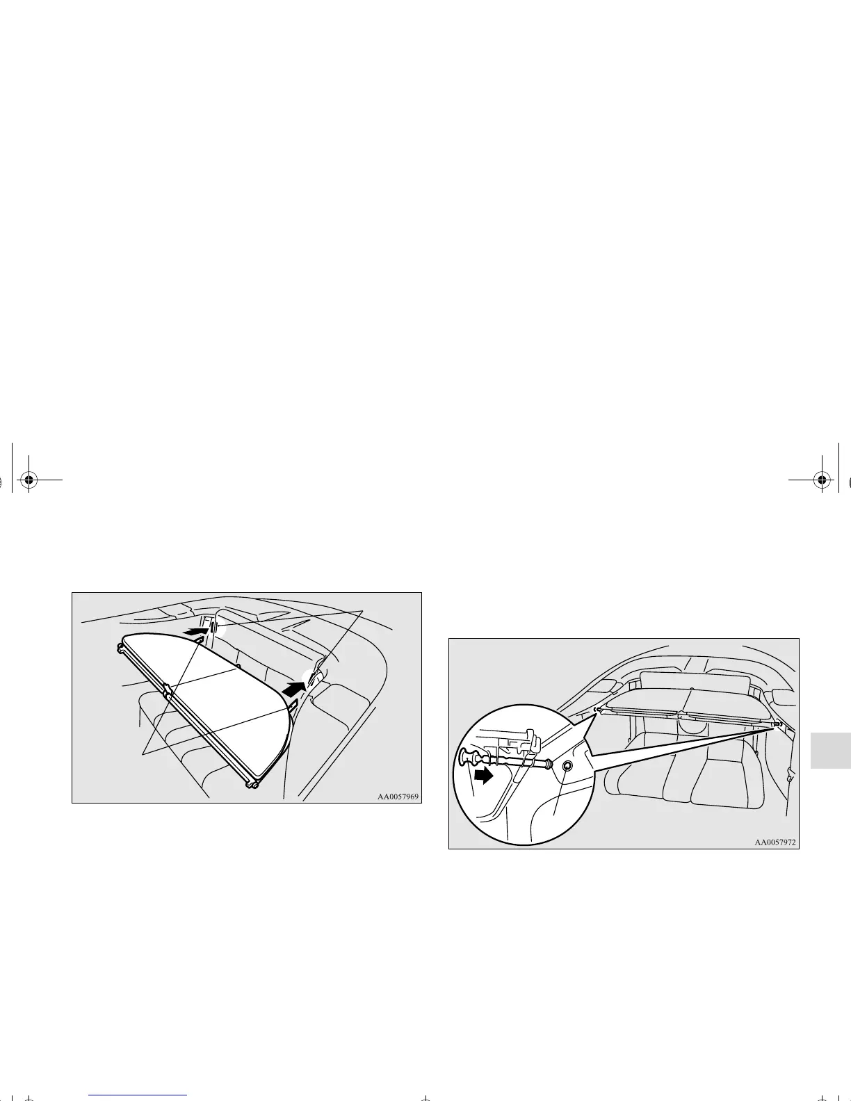 4. From inside the vehicle, insert the two retainer pegs (E)