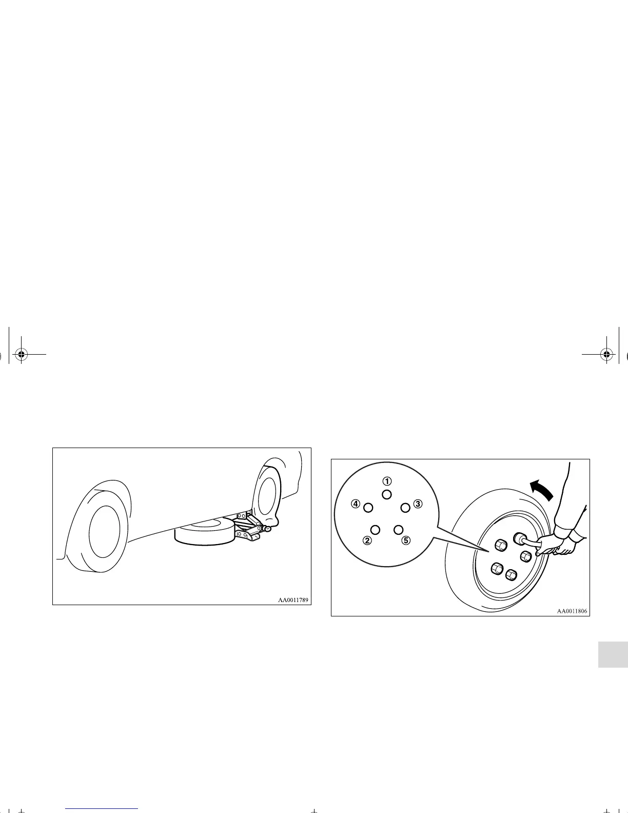 1. Loosen the wheel nuts with the wheel nut wrench. Do not