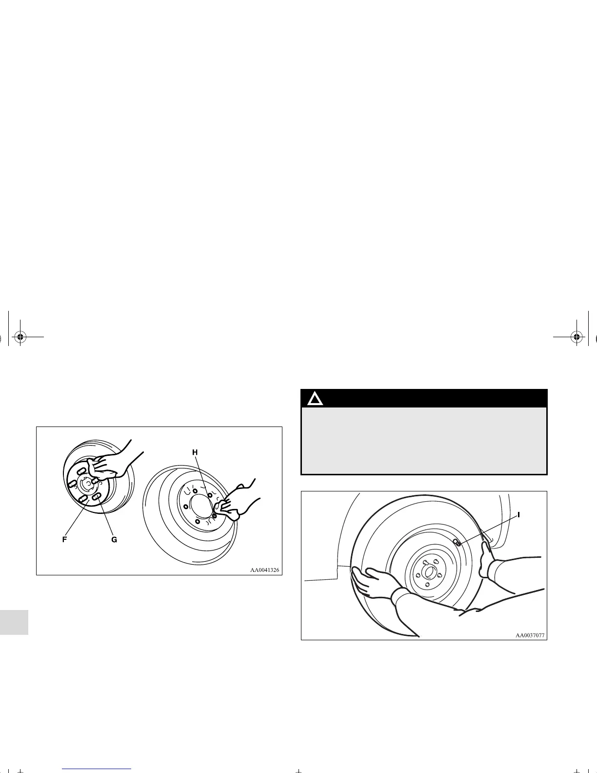 (G) or in the installation holes (H) in the wheel, and then