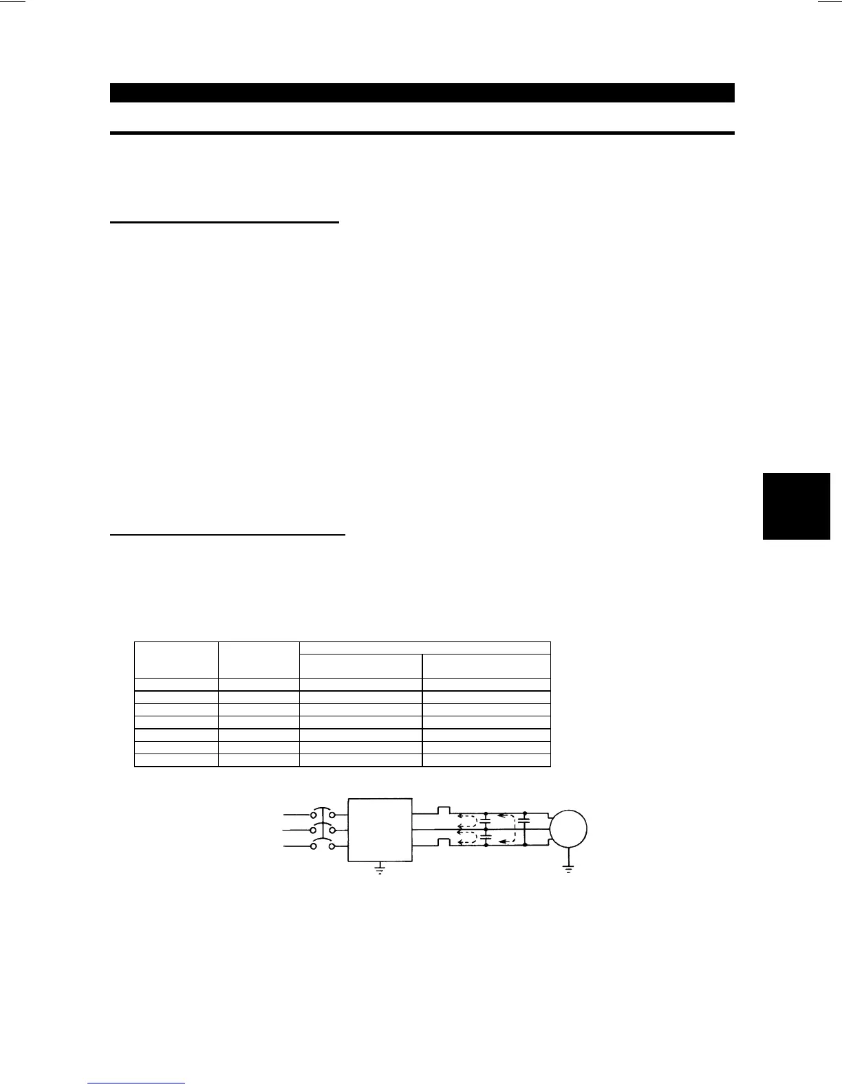 Due to the static capacitance existing in the inverter I/O wiring and motor, leakage currents flow through