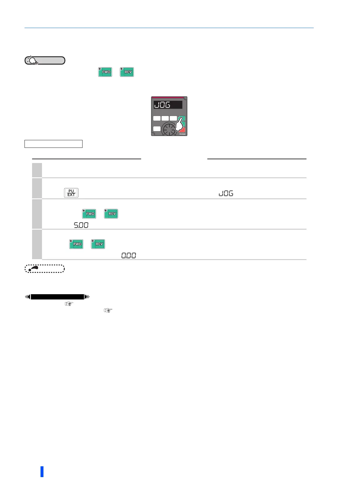 • To change the running frequency, change Pr.15 Jog frequency (initial value "5 Hz").