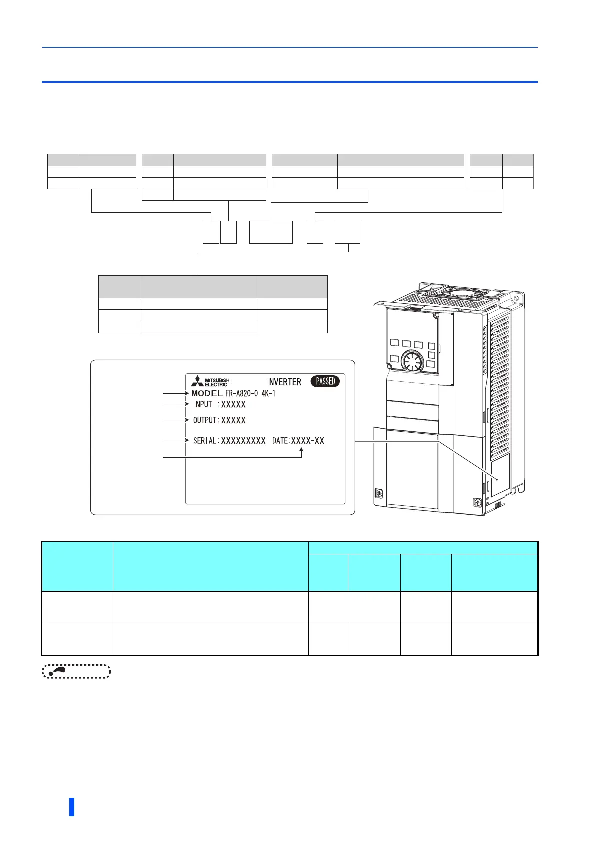 • Hereinafter, the inverter model name consists of the rated current and the applicable motor capacity.