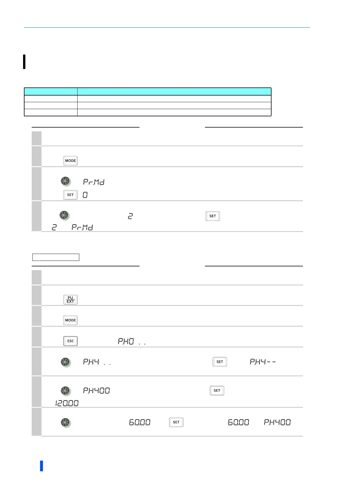 Changing example Change the P.H400(Pr.1) Maximum frequency.