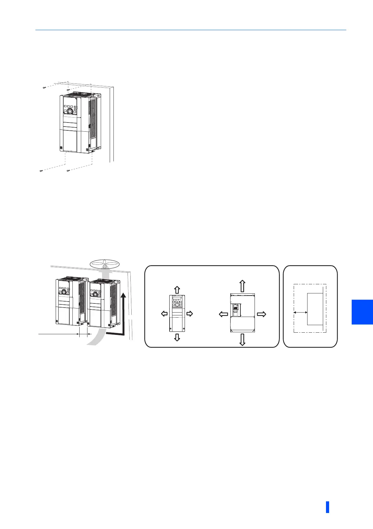 • When encasing multiple inverters, install them in parallel as a cooling measure.