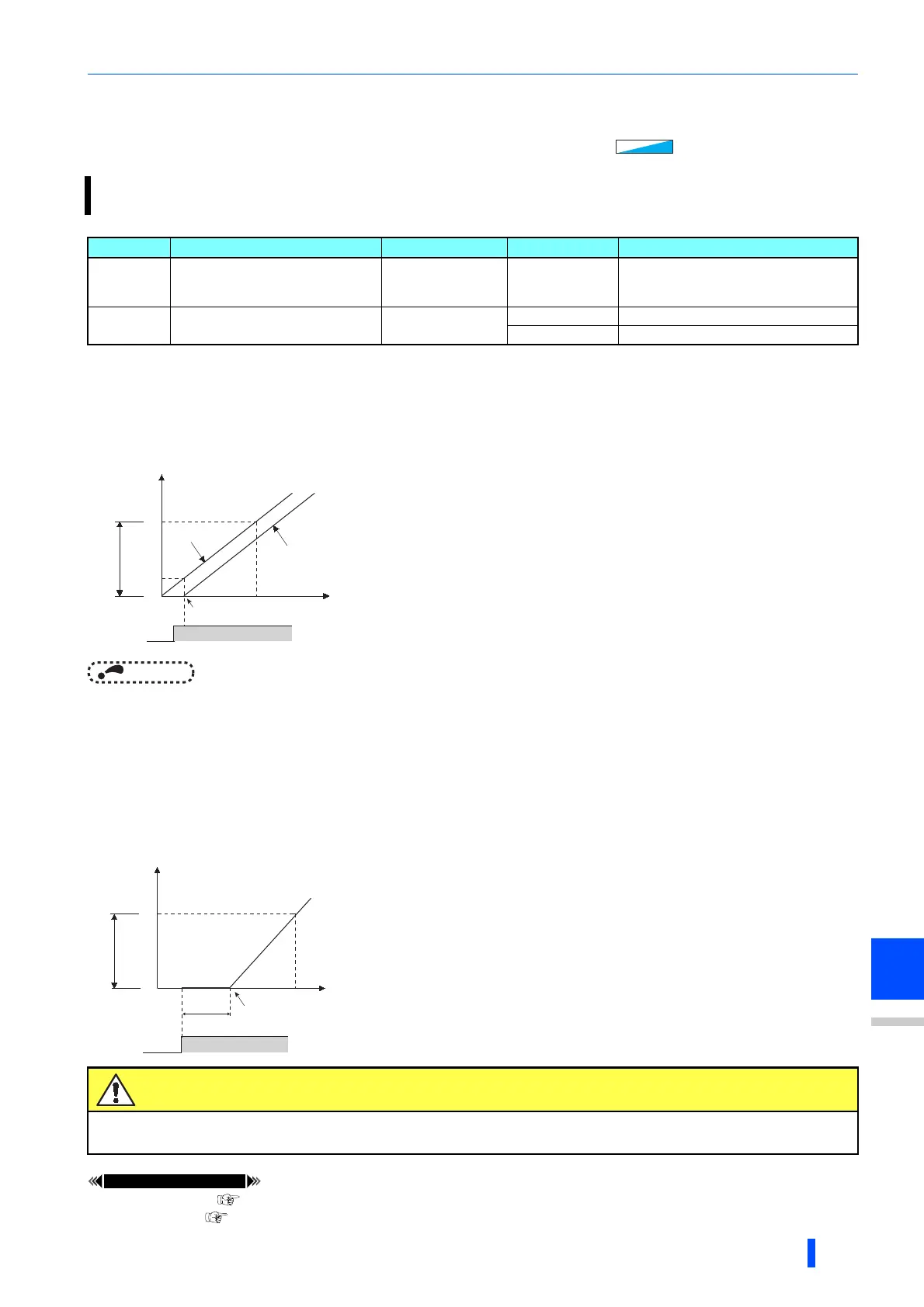• The inverter output does not start when the frequency-setting signal is less than Pr.13. For example, while Pr.13 = "20 Hz",