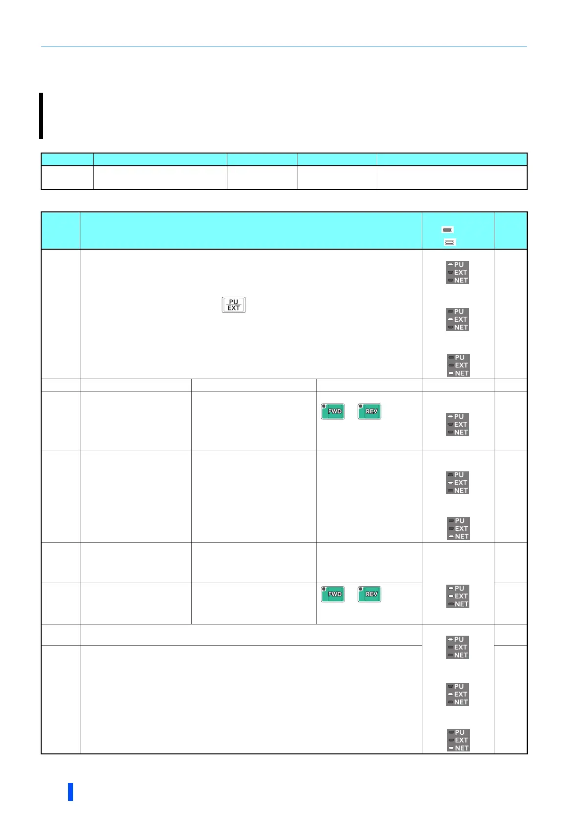 panel or the parameter unit (PU operation), combined operation of PU operation and External operation (External/PU