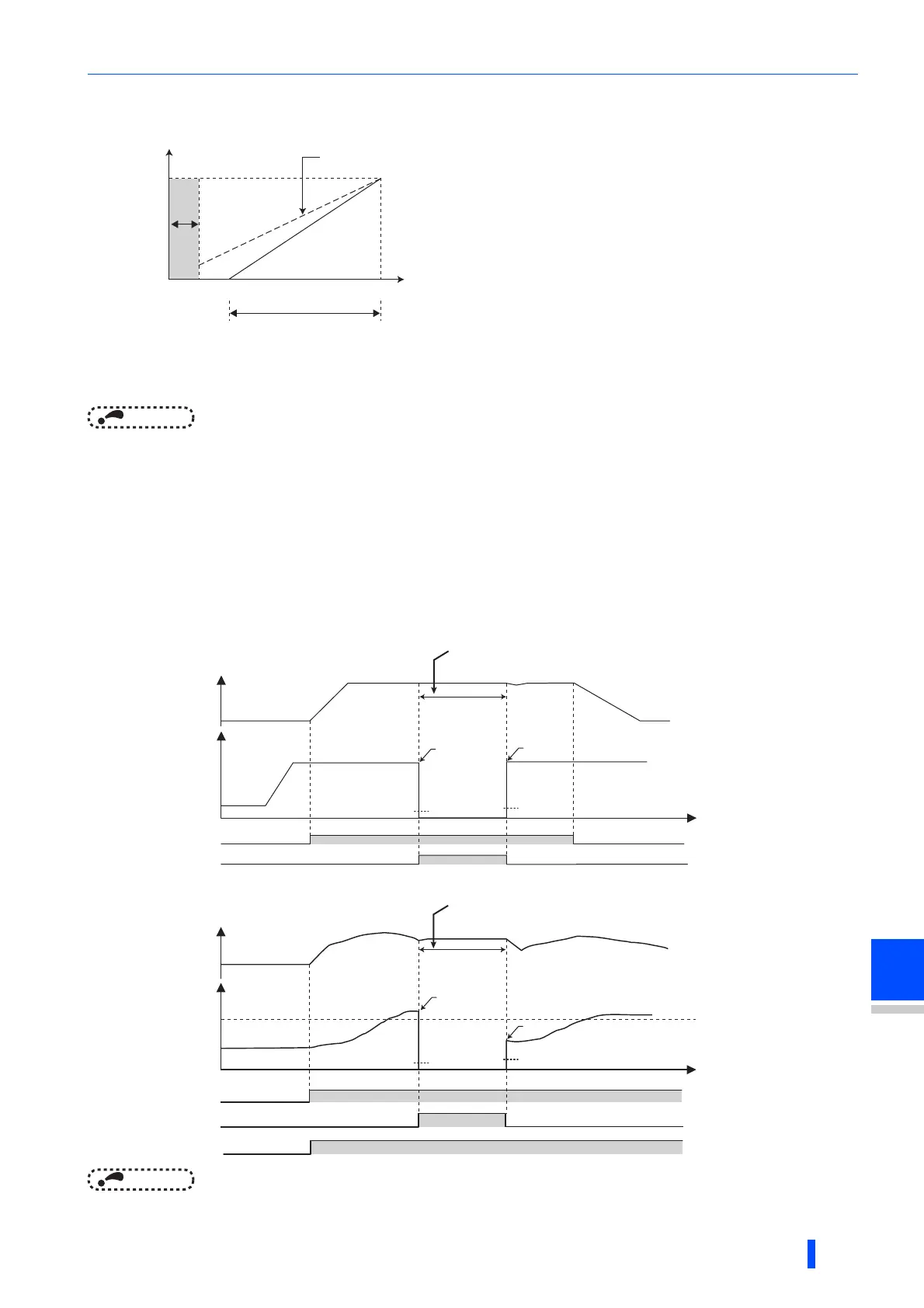 Pr.573=1 : Operation continued with the frequency before being lost