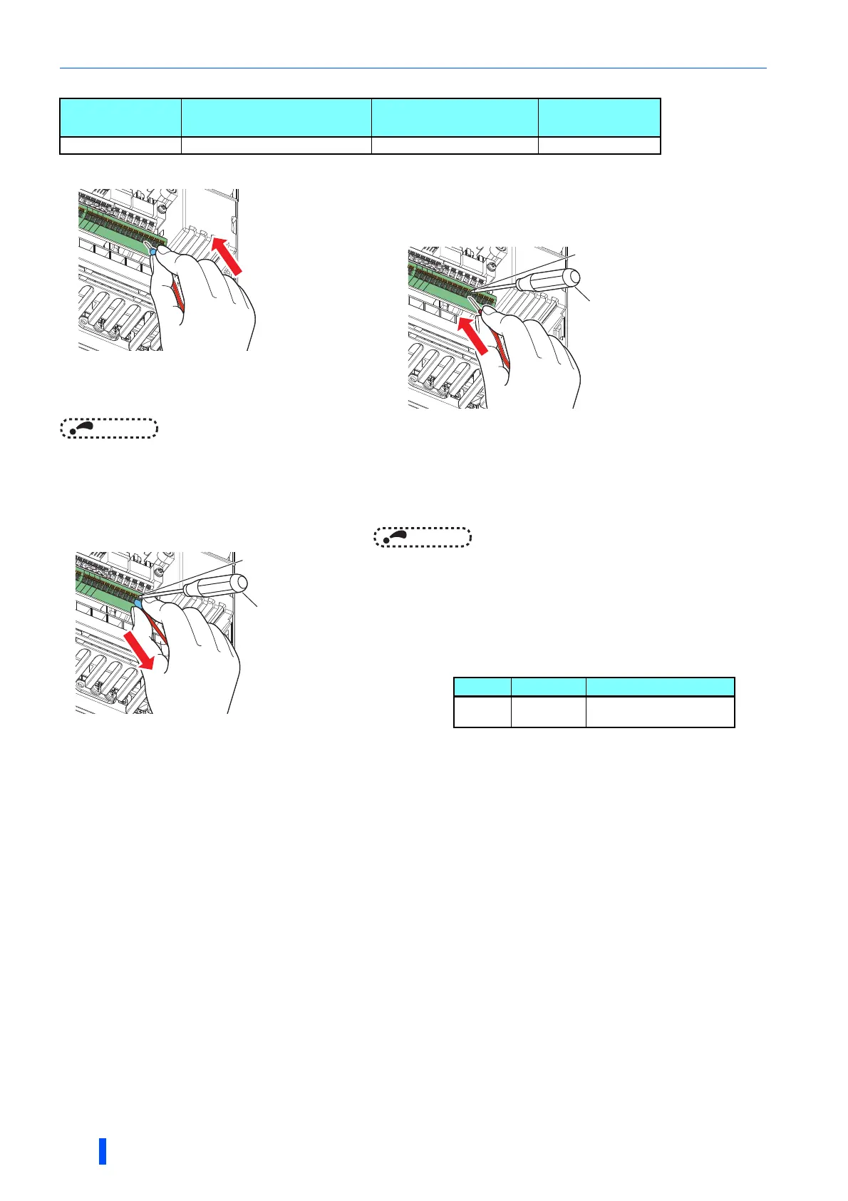 • Place the flathead screwdriver vertical to the open/close button. In case the blade tip slips, it may cause an inverter damage