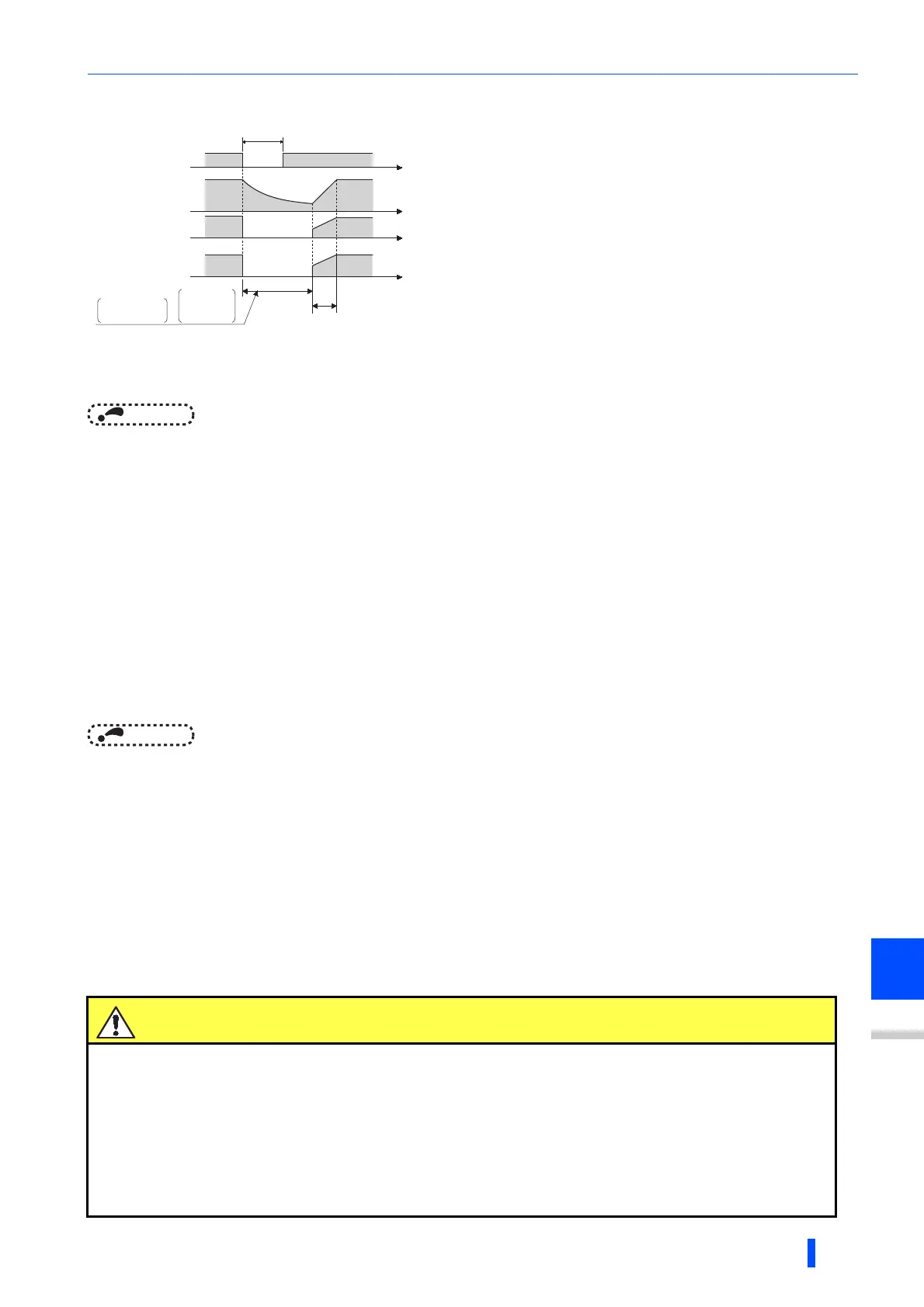 • Because a DC injection brake is applied instantaneously at speed detection during a restart, the speed might drop if the