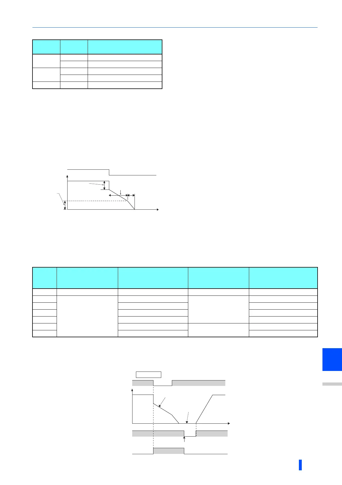 • Even if power is restored during deceleration triggered by a power failure, deceleration stop is continued after which the