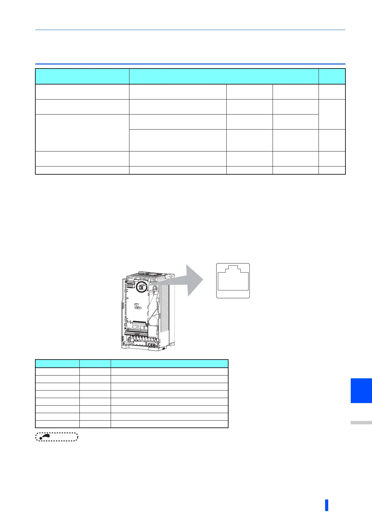 • Pins No. 2 and 8 provide power to the operation panel or parameter unit. Do not use these pins during RS-485