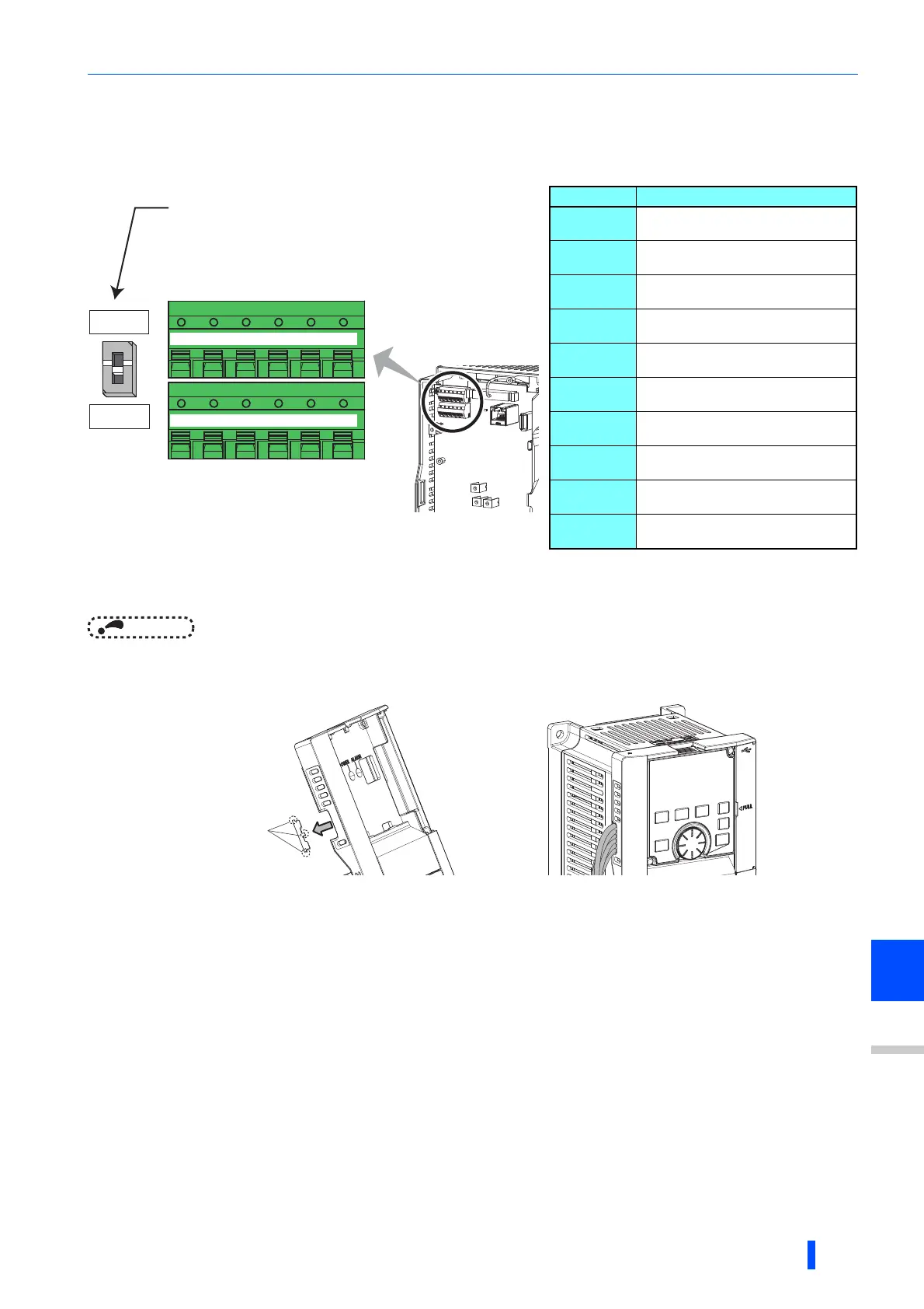 • The size of RS-485 terminal block is the same as the control circuit terminal block.Refer to page 51 for the wiring method.