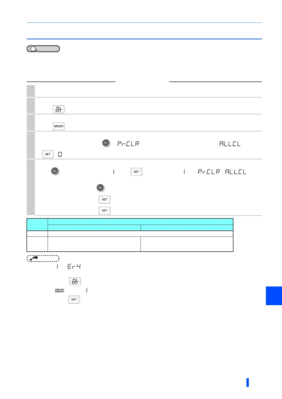 Pr.CLR Parameter clear ALL.CL All parameter clear