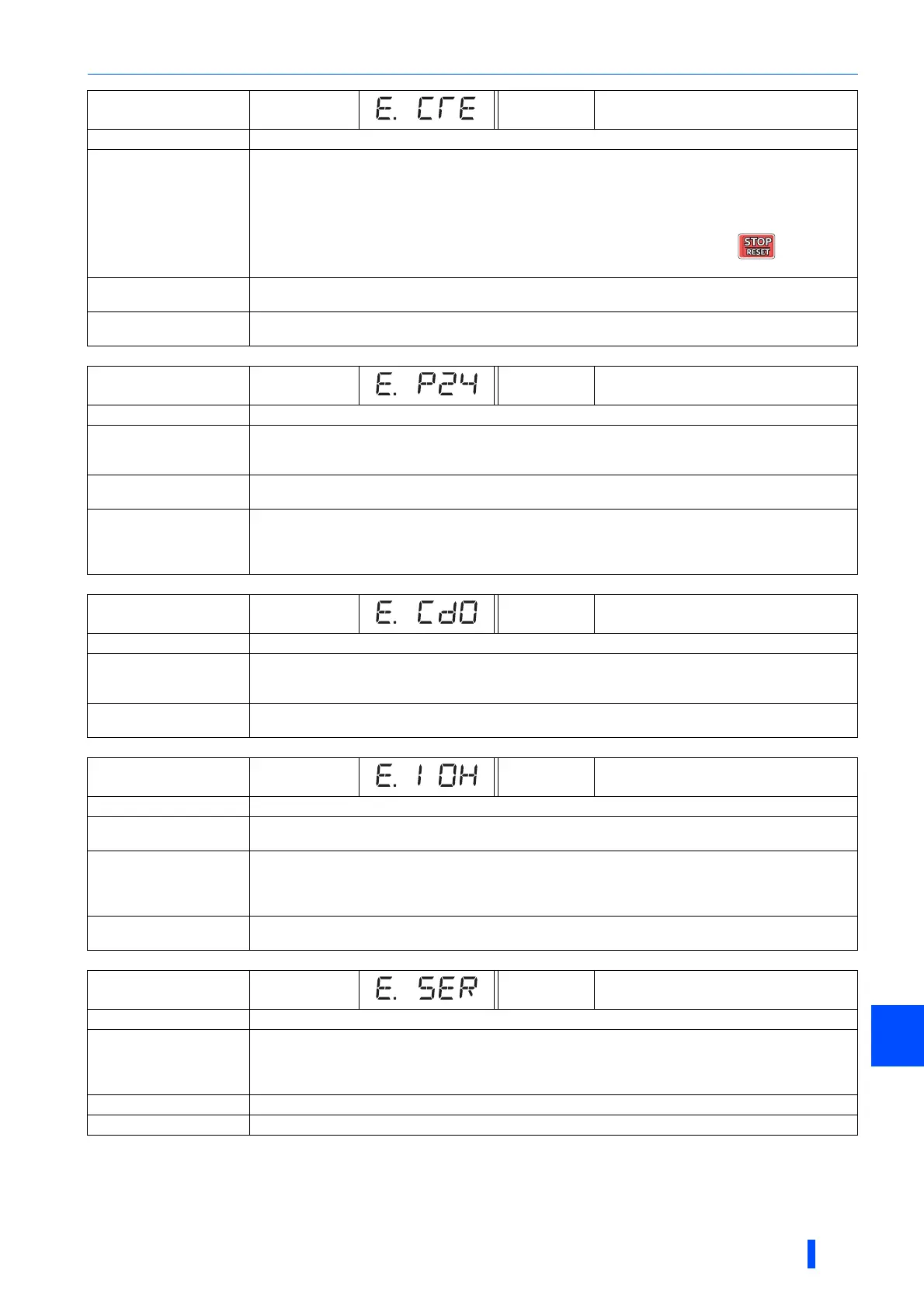 At this time, all external contact inputs switch OFF. The inverter cannot be reset by entering the RES signal.
