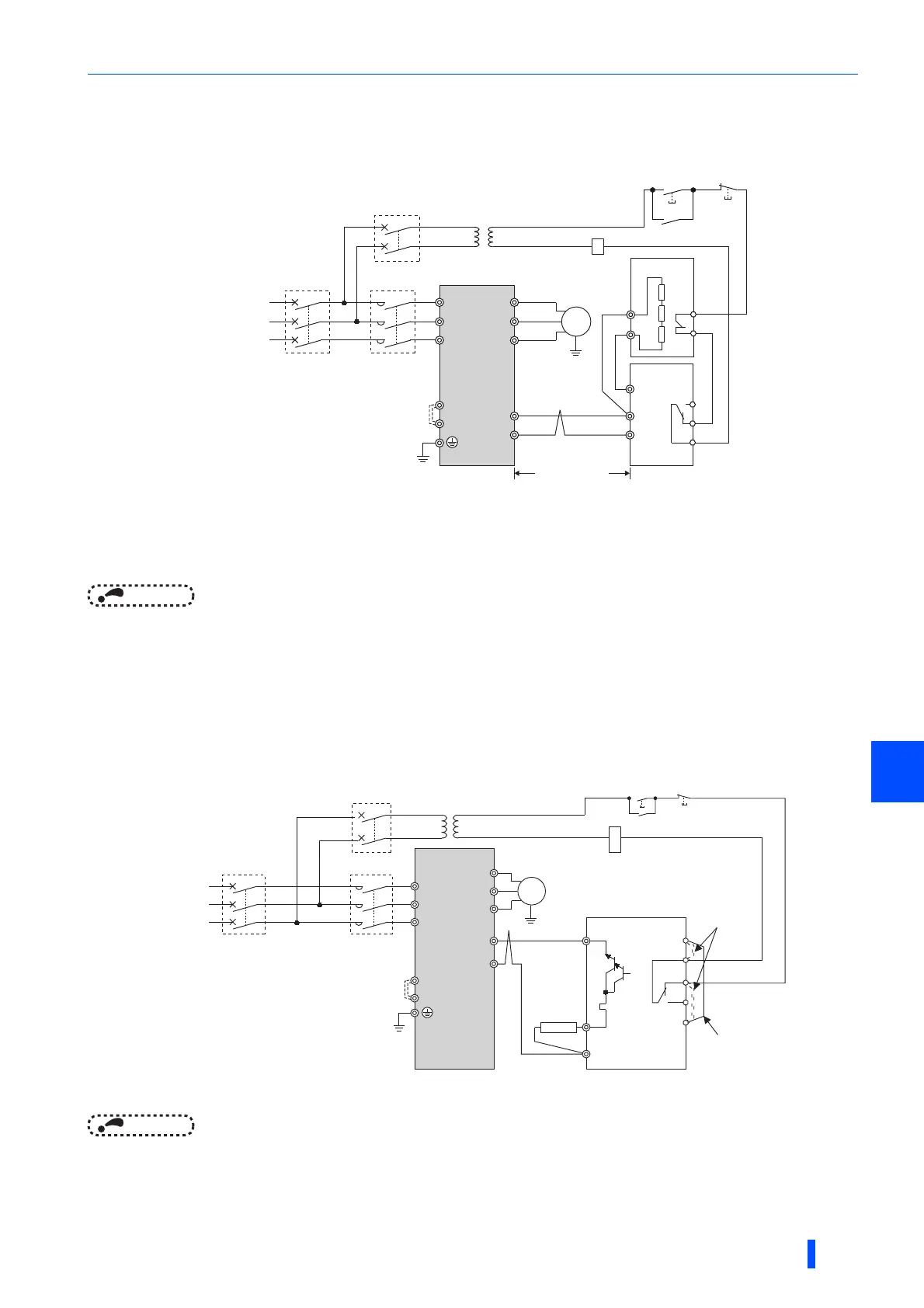 • If the transistors in the brake unit should becomes faulty, the resistor will overheat. Install a magnetic contactor on the