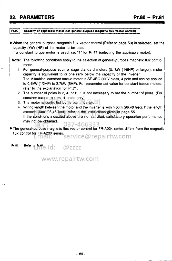 The general-purpose magnetic flux vector control for FR-A024 series differs from the magnetic
