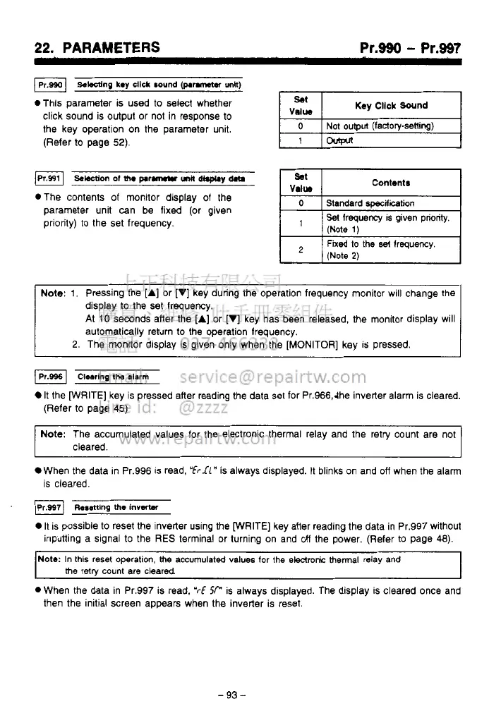 reset the inverter using the [WRITE] key after reading the data in Pr.997 without