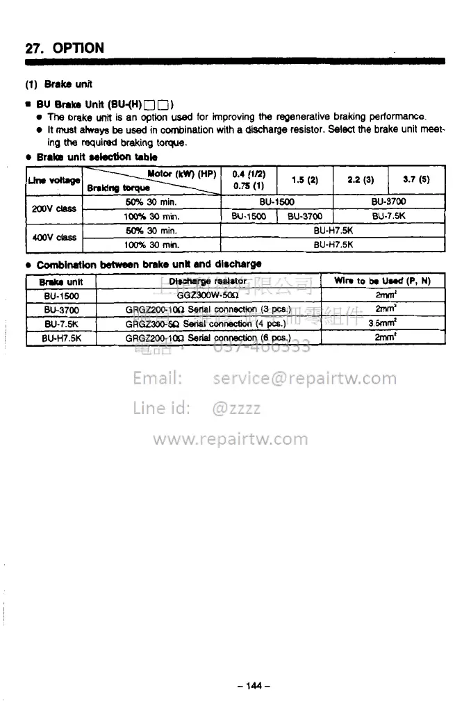 used in cornbination with a discharge resistor. Select the brake unit