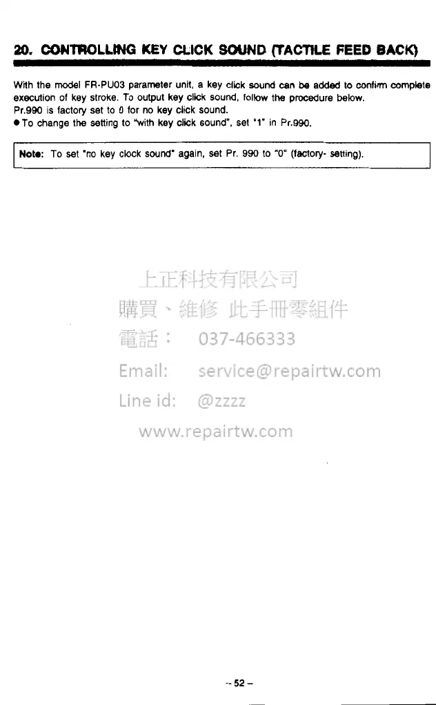 FR-PUO3 parameter unit, a key click