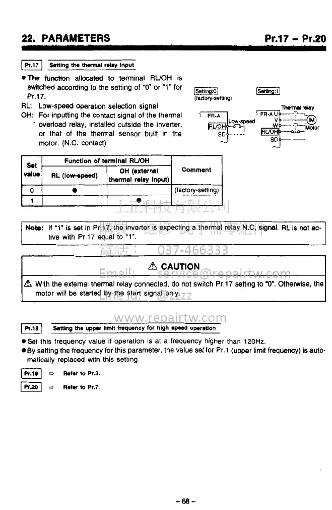 By setting the frequency for this parameter, the value set lor Pr.1 (upper limit frequency)